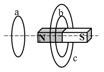 9.如图,条形磁铁的轴线穿过a、b、c三个金属圆环的圆心,且与三个环平面垂直,其中b、c两环同平面放置在条形磁铁的中垂面。三个圆环的面积为Sa=Sb<Sc。则通过a、b两环的磁通量Φa_______Φb,通过b、c两环的磁通量Φb_______Φc。(均选填“<”、“>”或“=”)