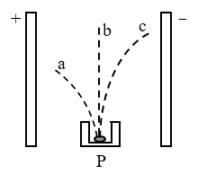 27.如图中P为放在匀强电场中的天然放射源,其放出的射线在电场的作用下分成a、b、c三束。以下判断中正确的是( )。