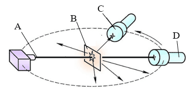 17.1909年,为了验证汤姆孙提出的原子结构,英国物理学家卢瑟福和他的同事们用高速运动的α粒子去轰击金箔来探测原子的构造情况。如图所示实验装置示意图,其中A为______,B为________,C为________,D为________。