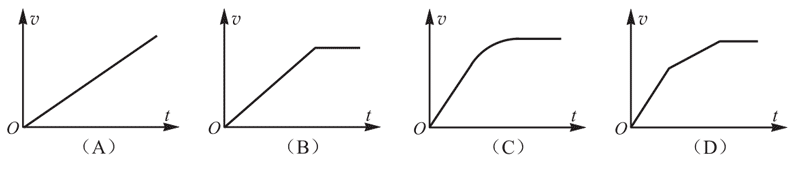 19.汽车在平直的路面上由静止开始匀加速启动,达到额定功率后继续加速达到最大速度,所受阻力恒定,能正确反映这个过程的v-t图是( )