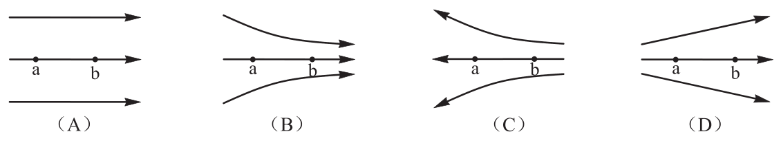 23.一正点电荷从静止开始,仅在电场力作用下由a点向b点运动,且加速度逐渐增大。该电荷所在的电场分布可能为( )