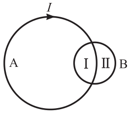 31.如图,在同一平面内有两个相互绝缘的金属圆环A、B,圆环A平分圆环B为面积相等的 Ⅰ 和 Ⅱ 两部分,A中通以恒定的电流I。则穿过 Ⅰ 、 Ⅱ 两部分的磁通量大小关系为( )