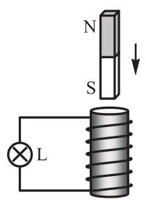 39.如图,条形磁铁向下穿过螺线管的过程中,观察到灯泡L发光。