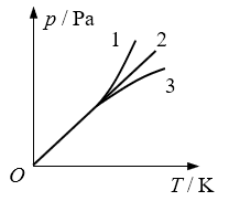 237.一定质量的理想气体,在三次加热升温的过程中,其压强与温度的关系如图所示,由图像可知( )
