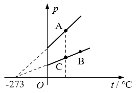 (A)若V1=V2,则p1T1=p2T2 (B)若V1=V2,则\(\frac{{{p_1}}}{{{T_1}}}\)=\(\frac{{{p_2}}}{{{T_2}}}\)