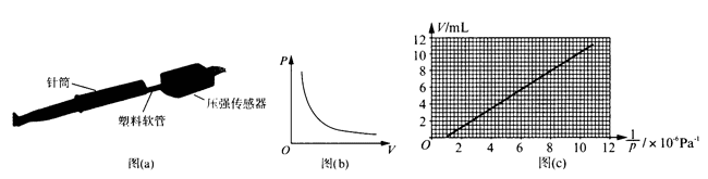 (1)图(a)为实验器件,实验中气体的压强可以通过压强传感器测量,气体的体积则通过____________获得;