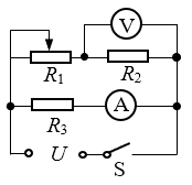 26.如图所示,R2=5 Ω,合上电键S,当可变电阻R1接入电阻为7 Ω时,电压表示数为2.5 V,电流表示数为0.75 A。求: