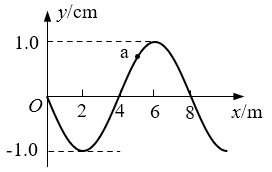 质点a向上运动,根据微平移法,波向左运动,即x轴负方向运动;由图可得波长λ=8 m,f=\(\frac{v}{\lambda }\)=\(\frac{4}{8}\)Hz=0.5 Hz。
