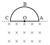 30.如图,半圆形闭合导线圈 OABC 下方有垂直纸面向里的匀强磁场,线圈直径 AC 位于磁场边界所在水平面内。线圈从图示位置绕圆心 O 点在纸面内顺时针转动一周,在此过程中线圈内的感应电流方向( )
