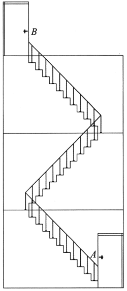 位移的大小是AB间连线的长度,为\(\sqrt 10 \)h,路程是三段楼梯长度之和,为3\(\sqrt 5 \)h