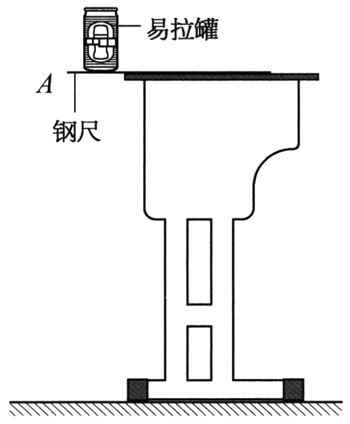 15.某同学设计了一个运用自由落体运动的规律测量重力加速度的实验方案,实验装置如图所示。他将一个空易拉罐用钢尺支撑在桌边,水平敲击钢尺上的A点,钢尺移动,使易拉罐由静止下落。通过声传感器采集敲击声和落地声,根据两次声音间的时间差和下落点离地的高度,即可得到重力加速度的大小。请对该同学的实验方案作出评价,提出改进的意见,并动手做一做。