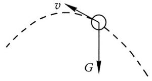参考解答:见图 1(受到重力 G 竖直向下;速度 v 沿篮球运动轨迹的切线方向向前)。
