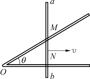 2.如图所示,相距 L = 10 cm 的两条平行导轨组成的平面与水平面夹角 θ = 30°,导轨两端 M、N 间接一电动势 E = 3 V、内阻 r = 0.5 Ω 的电源,垂直于导轨平面有一匀强磁场,将质量 m = 10 g 的金属棒垂直放在平行导轨上,金属棒恰能静止不动。若两导轨间金属棒的电阻 R = 1 Ω,试回答: