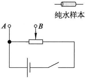 17.在工业生产中,常需要测量液体电阻率。例如,纯水的技术指标中,就有关于电阻率的相关规定。实验室用三级纯水的电阻率应不低于 0.2 MΩ·cm(25 ℃)。为了方便研究纯水的电阻率,现将纯水样本在两侧为电极的圆柱形玻璃管中装满,如图所示。某同学打算使用伏安法测量纯水样本的电阻值,使用到了稳压电源、滑动变阻器、电压及电流传感器等,试完成 A、B 两点间的连接,并简述如何处理实验数据,得出结论。