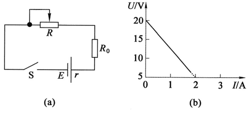 (2)由图(b)可知,电动势大小为 20 V;图线的斜率为 7.5,所以内阻的大小为 7.5 Ω