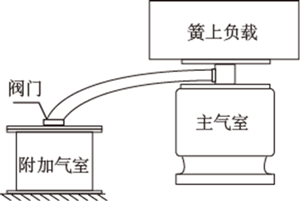 (2)主气室连通附加气室(阀门打开)后,在上述两种情形下,导出空气弹簧的劲度系数 K 与其有效承载面积 Ae 之间的关系。主气室与附加气室之间连通管道的容积可忽略。