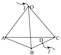 8.用 6 条相同的均匀电阻丝搭建一个正四面体框架 OABC,D 是 BC 边的中点,从 O、D 两点分别引出导线(忽略导线电阻和接触电阻),并通以电流 I,如图所示。已知每条电阻丝的电阻为 r。在正四面体框架 OABC 中,AB 段电阻丝上的电流为_____I;O、D 之间的电阻为_______r。