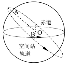 (2)空间站通过北纬 42° 的某地 A 点正上方之后第一次到达赤道,此时,空间站在赤道上的 B 地的正上方。求 B、A 两点的经度之差。