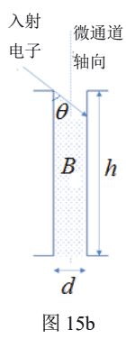 15.微通道板电子倍增管是利用入射电子经过微通道时的多次反射放大信号强度的一种电子器件,如图 a 所示.设一电子刚好从一直径为 d、高为 h 的正圆柱形微通道的含轴截面(即虚拟的轴所在的截面)的一角射入此面内,进入微通道,入射速度大小为 v0,入射方向与通道壁母线(与轴平行)之间的夹角为 θ。假设每个电子撞入内壁后撞出 n 个次级电子。通道内有沿轴向的匀强电场,电场强度为大小为 E。忽略重力和各级电子间相互作用,电子电量的绝对值为 e,电子质量为 m。