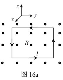 (2)一面积为 S 的矩形环电流 I 处于一磁场中,环电流方向为逆时针方向,磁场方向平行于 x 轴方向,如图 a 所示.已知磁场在 y 方向是均匀的;但在 z 方向均匀变化,且 z 方向单位距离的磁感应强度之差为 Bzʹ(称之为梯度磁场,Bzʹ 为 z 方向磁场的梯度).求环电流所受合力 F 大小及方向;