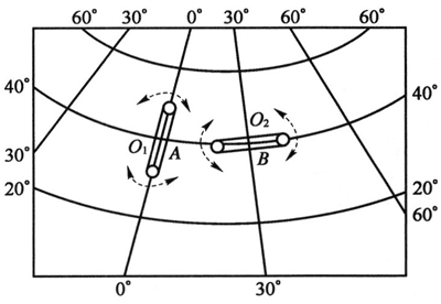 当线圈平面水平放置,地磁场通过线圈的磁通量几乎为零。绕南北方向的轴线转动时地磁场通过线圈的磁通量不变,线圈中无感应电流。线圈平面水平放置,绕东西方向的轴线转动过程中,当线圈平面垂直于地面时通过线圈的磁通量最大,当线圈平面平行于地面时通过线圈的磁通量最小,转动过程中通过线圈的磁通量变化,线圈中有感应电流。如图 17 所示,地球的南北方向与地球附近地磁场的方向几乎相同,当线圈平面竖直放置且平行于南北方向绕竖直轴 O1 转动线圈,虽然在图示位置通过线圈的磁通量为零,但是地磁场通过线圈的磁通量变化较明显;当线圈平面竖直放置且平行于东西方向绕竖直轴 O2 转动线圈,虽然在图示位置通过线圈的磁通量最大,但是地磁场通过线圈的磁通量变化却不明显,所以显示感应电流比较明显的是线圈 A。