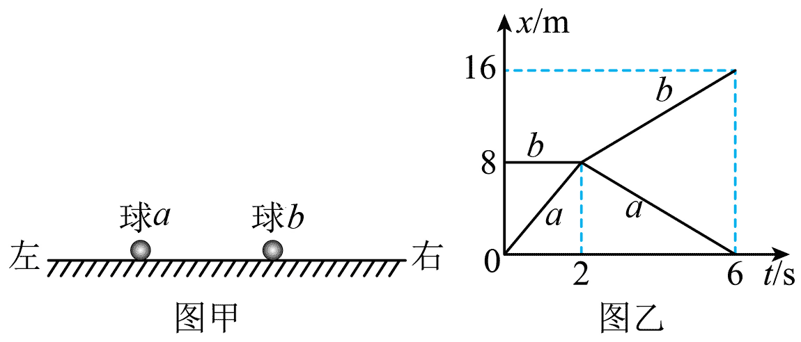 152.如图甲所示,a、b 两小球在足够长的光滑水平面上发生正向对心碰撞。a、b 的质量分别为 m1 和 m2,且 m1 = 1 kg。取水平向右为正方向,两小球碰撞前后位移随时间变化的 x – t 图像如图乙所示。下列说法正确的是( )