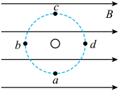 7.如图,一根通电直导线垂直放在磁感应强度为 1 T 的匀强磁场中,以导线为中心、R 为半径的圆周上有 a、b、c、d 四个点,已知 c 点的实际磁感应强度为零。