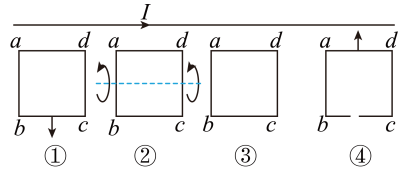 2.线圈在长直导线电流的磁场中做如图所示的运动:①向下平动;②绕轴转动;③垂直于纸面向纸外平动;④向上平动(线圈有个缺口)。则线圈中没有感应电流的是( )