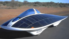 7.太阳能汽车是利用太阳能电池发电,再利用电动机驱动汽车的一种新型环保汽车。如图,概念车的形状比较奇特,有流线型的外形,车身部布满太阳能电池,车内空间仅能容纳司机一人。某辆概念车,其太阳能电池的总面积 S = 8.0 m2,电池组的内阻忽略不计,输出电压 U = 120 V,提供给电动机的工作电流 I = 10 A,电动机内阻 r = 3 Ω。太阳光照射后车身上的太阳能电池每平方米可获得的辐射功率 P0 = 1.0 kW。在水平面上行驶时,车受到的阻力 f = 150 N。