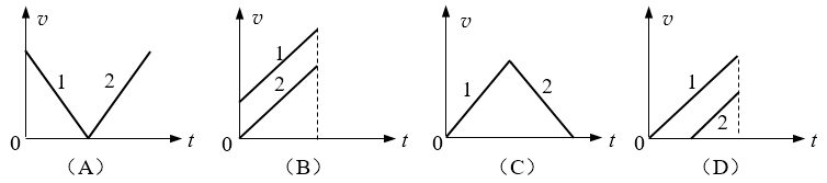 A.t1 = t2,v1 = v2 B.t1 > t2,v1 > v2 C.t1 < t2,v1 < v2 D.t1 < t2,v1 > v2