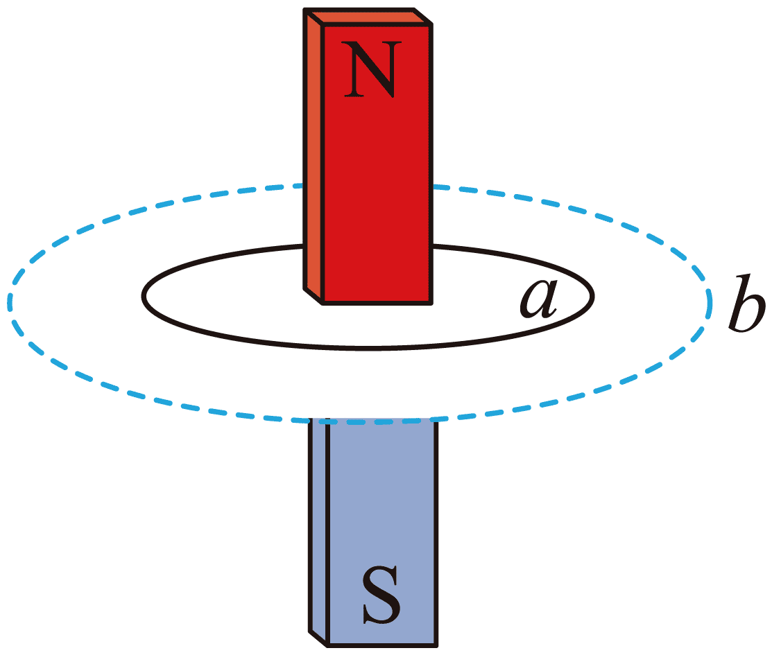 4.如图,圆形金属线框 a 套在条形磁铁上,磁铁与线框所在的平面垂直且穿过其圆心。若将 a 对称地扩展为 b 的形状,则穿过线框的磁通量( )