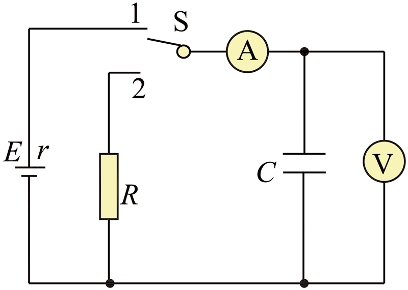 4.某同学查阅资料,得知金属球与外壳之间构成一个电容器。于是,他找一个电容器接在图示电路中进行研究:双掷开关 S 拨至 1 时,电源给电容器充电;拨至 2 时电容器通过电阻 R 放电。则( )