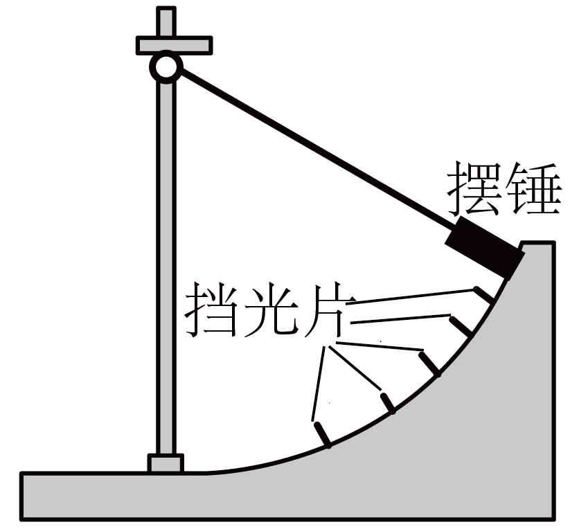 5.图示为“验证机械能守恒定律”的实验装置。实验中,将完全相同的挡光片依次固定在圆弧轨道上,测出部分数据如下表: