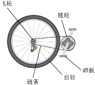 自行车是生活中最为常见的一种环保交通工具。它的基本传动结构如右图所示:后轮作为驱动轮与飞轮同轴固定,飞轮与链轮通过自行车链条连接,链轮和踏板同轴固定。通过脚踩踏板作为动力驱动整辆自行车向前运动。自行车可以通过改变链轮、飞轮半径(齿数)的不同组合来改变车速。