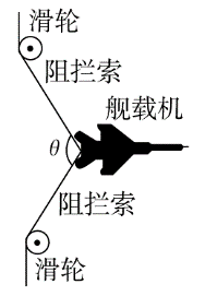 (2)若某时刻,拦阻索夹角 θ 为 60º,如图所示,求此时拦阻索的拉力大小。(保留 2 位有效数字)