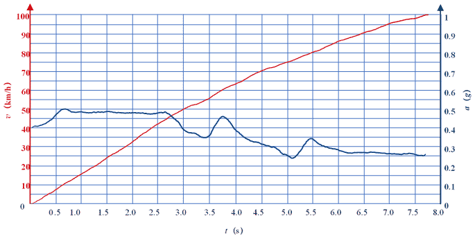汽车加速时间又称为汽车的加速能力,是指汽车在各种使用条件下迅速增加行驶速度的能力。百公里加速时间是指汽车从静止开始加速到 100 km/h 所用的时间,是对汽车动力最直观的体现。百公里制动距离的标准是汽车以每小时 100 公里的速度行驶,将制动器压到底,达到最大制动力后,开始制动到汽车停止的距离。