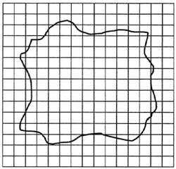 将刻有方格的透明板放在浅水盘上,用水彩笔描油膜形状时注意视线要与板面垂直 |