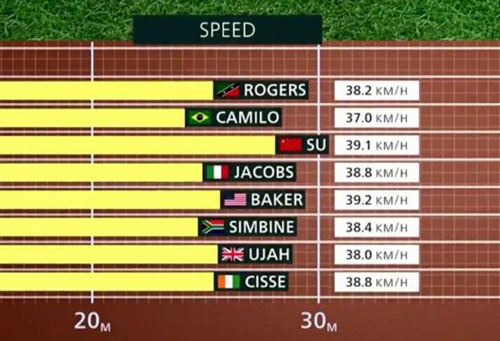 数据来自于“苏炳添2021年东京奥运会百米半决赛”。上网查了下,苏炳添半决赛跑至 30 m 处用时 3.73 s,是目前世界第一,去除起跑反应时间 0.142 s,也是 3.58 s,题目中的 3.298 s 来源不明。