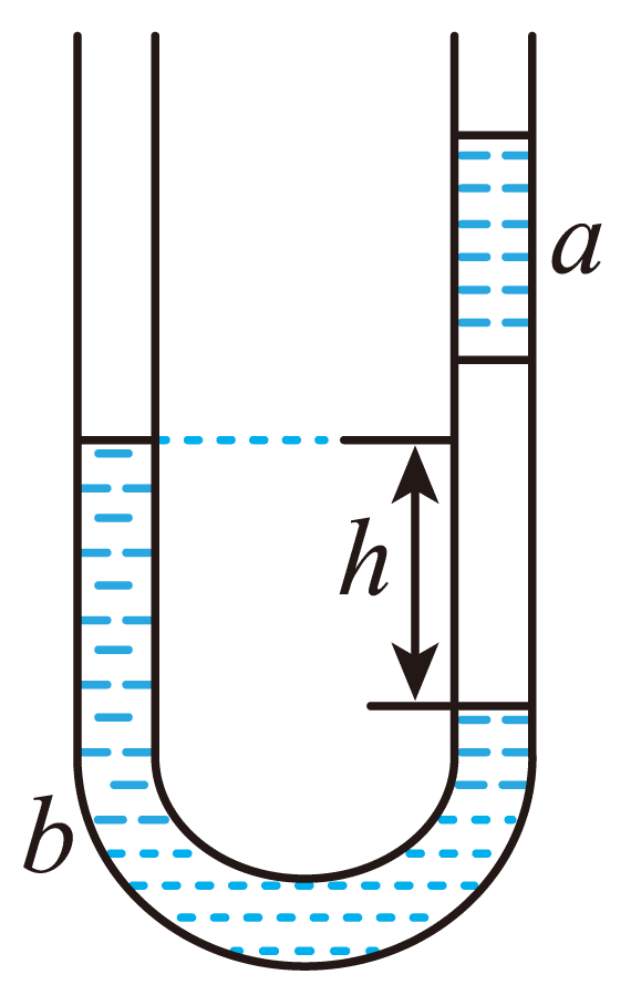 3.如图,在竖直放置的两端开口的 U 形管中,一段空气柱被水银柱 a 和水银柱 b 封闭在右管内,水银柱 b 的两个水银面的高度差为 h。若将 U 形管放入热水槽中,则系统再度达到平衡的过程中(水银没有溢出,外界大气压保持不变)( )