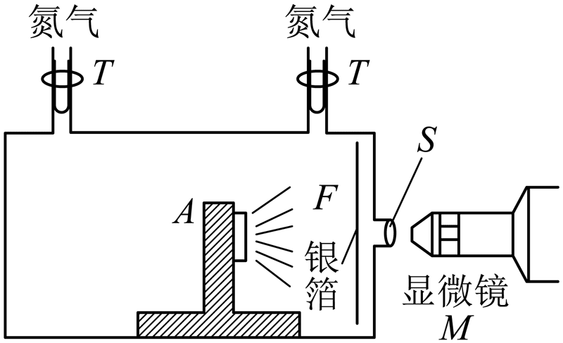 23.如图所示为卢瑟福做原子核人工转变实验的装置。容器中充有_________气,放射性物质 A 射出的 α 粒子_________穿过铝箔 F(选填“能”或“不能”)。荧光屏 S 上的亮点是_________打出的,该粒子是 α 粒子轰击氮核而产生的,此核反应方程是_________________。