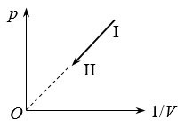 1.如图,一定质量的气体,从状态 Ⅰ 变化到状态 II,其 p – 图像为过 O 点的倾斜直线,下列说法正确的是( )
