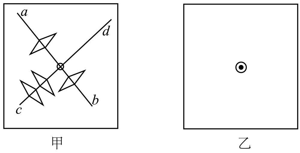 (1)如图甲所示,让竖直的通电长直导线垂直穿过一张硬纸板,以导线为中心在纸板上任意作直线 ab、cd,在直线上不同位置放上能够自由转动的小磁针。发现当小磁针静止时,直线上关于导线对称的两处小磁针 N 极指向_______(选填“相同”或“相反”)。改变电流大小,小磁针指向将______(选填“变化”或“不变”);