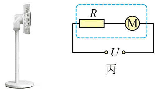 5.某品牌的落地电风扇,其内部工作电路如图丙所示,总电阻 220 Ω。给电风扇接通 220 V 电源后,电路中电流_______ 1 A(选填“大于”、“小于”或“等于”)。