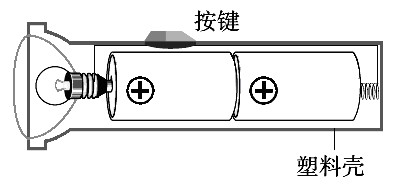 手电筒是一种便携式照明工具。如图所示的手电筒,由塑料壳、二节干电池、小灯泡、按键等组成。