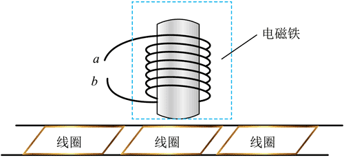 (2)车厢抵达 G 处后轨道是水平的,可以在轨道上铺装一排水平放置的闭合线圈或铝板,车厢下端装电磁铁,简化模型如图(b)所示,到 G 处后给电磁铁通电可实现制动。
