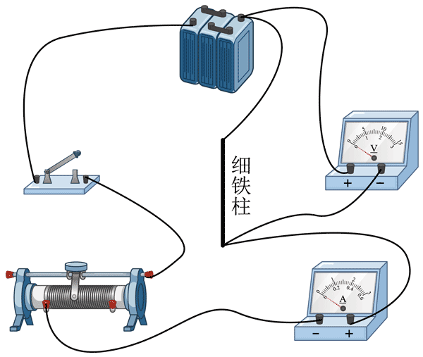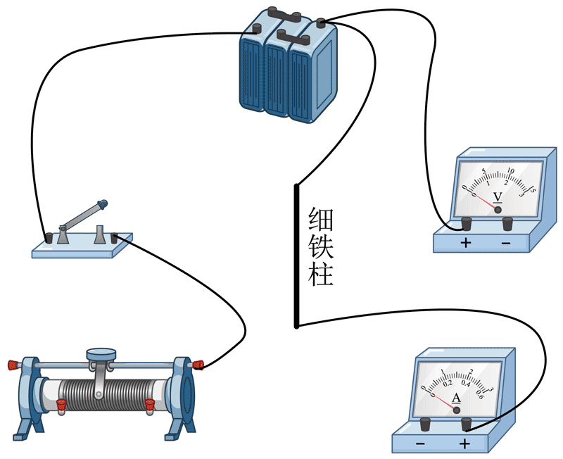 2.电荷定向移动产生电流,电阻反映了导体对电流的阻碍作用。请在所给的实验器材图上补上合适的连线,完成“用伏安法测量待测细铁丝的电阻”的电路图。