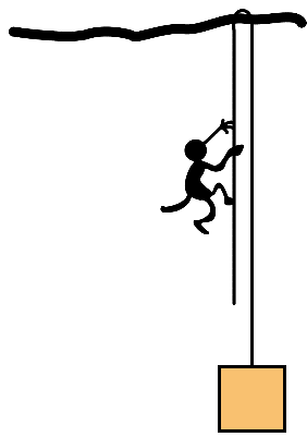 3.如图,一质量为 8 kg 的猴子在空中抓着一根绳子沿绳向上爬,绳子的另一端牢牢系在一个质量为 12 kg 的箱子上,绳子质量不计,绳子与树干间摩擦不计。如果猴子能将箱子提离地面,设猴子的最小加速度为 a1。一段时间后猴子体力不支,只能停止上爬而抓住绳子不放,设猴子的加速度为 a2,则( )