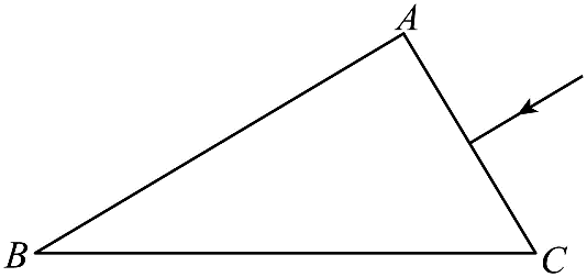 3.直角棱镜的横截面如图所示,图中 ∠A = 90°,∠B = 30°,AC 边长为 10 cm。截面内一细束单色光线从棱镜 AC 边中点垂直射入,在 BC 边未观察到光线射出,在 AB 边观察到有光线射出,则光线在 AB 边的出射点到 B 点的距离为________cm。此棱镜的折射率 n 的取值范围为________。