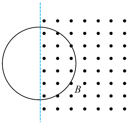 2.一有界匀强磁场区域如图所示,质量为 m、电阻为 R、半径为 r 的圆形线圈一半在磁场内,一半在磁场外。t = 0 时磁感应强度大小为 B0,以后均匀减小至零,其随时间的变化率为一常数 k。线圈中产生感应电流,在磁场力作用下运动,不计重力影响。则 t = 0 时线圈的加速度 a 大小为________。线圈做匀速直线运动时回路中的电功率 P 可能为________。