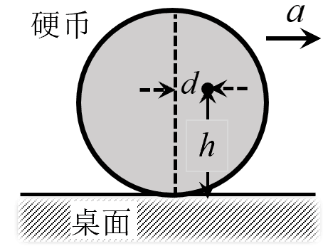 (1)如图(a),高铁沿水平直线轨道做匀加速运动,该硬币竖直立在此高铁内的水平桌面上,硬币面和加速度方向平行。